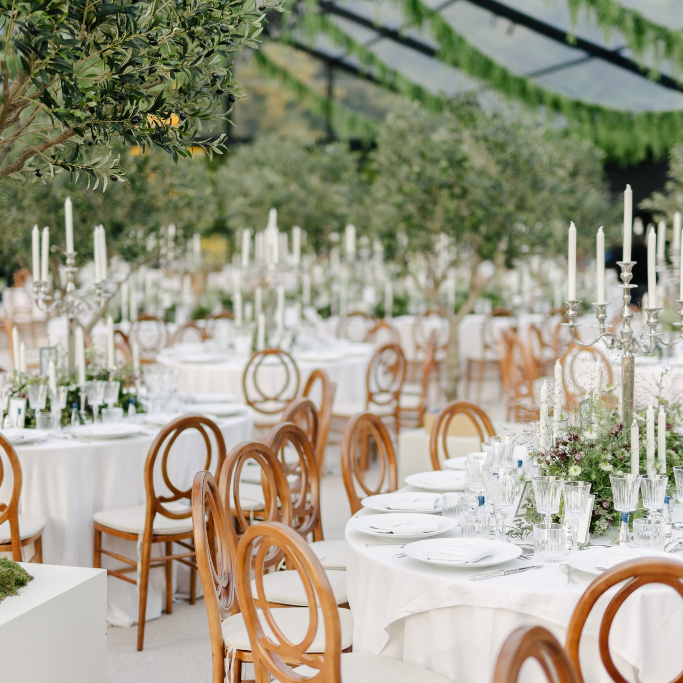 Vaisselle, couverts, verrerie, mobilier, nappage, articles de service, matériel de cuisine et équipements extérieurs.