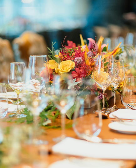 Dîners intimistes, réceptions privées, mariages, événements corporate, services traiteur et projets sur mesure.