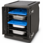 Conteneur isotherme professionnel pour le transport de plats chauds ou froids. Son ouverture frontale facilite le chargement et le déchargement des bacs gastronormes.