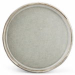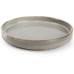 Caractéristiques : porcelaine émaillée réactive | dimensions : Ø 13,5 x H 2 cm | coloris gris aux reflets naturels | rebord brun contrastant | compatible micro-ondes | ne passe pas au four | collection Ceres.