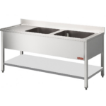 Cette plonge professionnelle en acier inoxydable est conçue pour un usage intensif en cuisine ou en événementiel. Ses deux grandes cuves offrent un espace de lavage généreux, tandis que l’égouttoir latéral gauche facilite le séchage et la manipulation des ustensiles. Sa structure robuste garantit stabilité et durabilité, et son dosseret arrière protège efficacement le mur des éclaboussures.